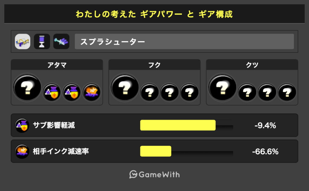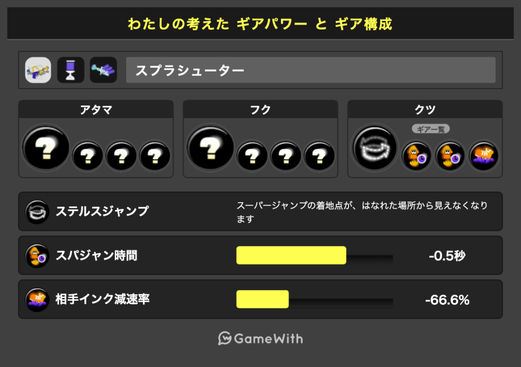 前線シューターに特におすすめのギア構成テンプレートとなっています。
