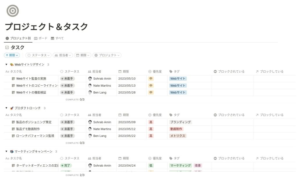 プロジェクト・タスク管理テンプレートは、Notionを使うなら必ず使って欲しいテンプレートです。